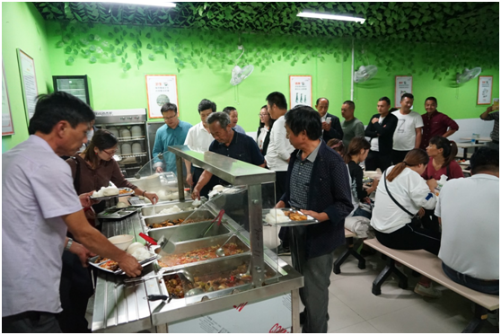 參觀結束后,大崗村的老師們和美盛員工代表一起在員工食堂用餐,食堂的師傅們為各位老師準備了豐盛的午餐