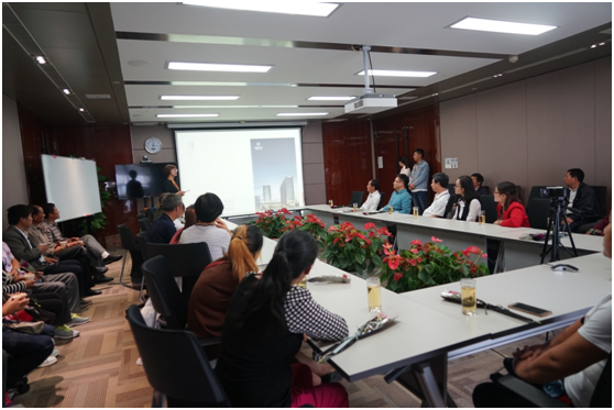 劉主任、李書記、楊校長一行35人首先在美盛中心參觀了美盛地產集團的辦公區域。為迎接老師們的到來,美盛地產集團為每一位老師都精心準備了一支康乃馨,并送上了深深的節日祝福。