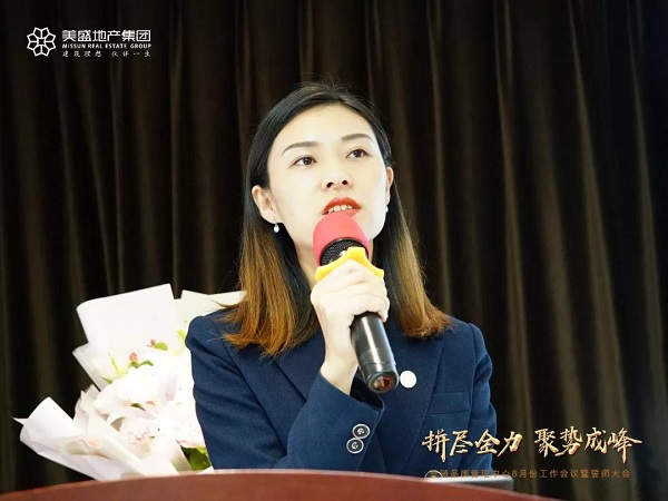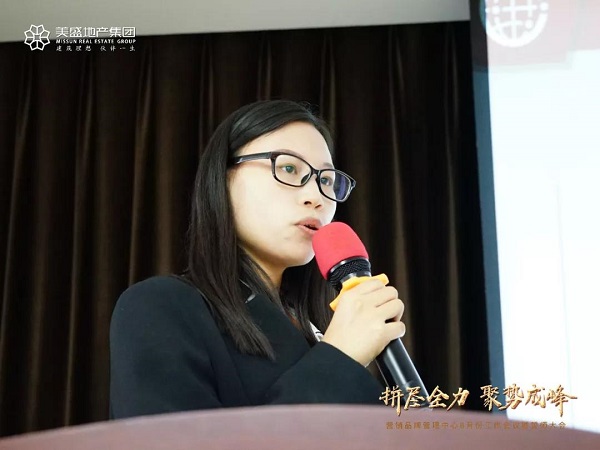 美盛地產(chǎn)集團營銷管理中心總經(jīng)理梁藝君女士在會議上表示:"面臨著8月份新目標(biāo)以及年終業(yè)績目標(biāo),各項目營銷負(fù)責(zé)人,在集團高戰(zhàn)略、快發(fā)展的目標(biāo)下,要時刻保持對業(yè)績的敬畏之心,敏感洞察當(dāng)前房地產(chǎn)市場。"
