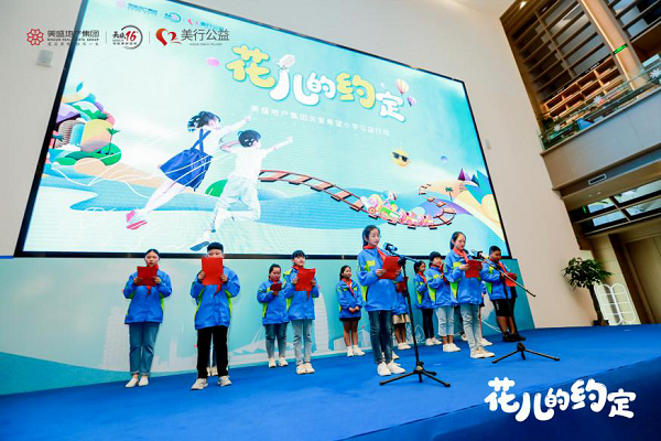 伴隨著美盛地產集團營銷品牌管理中心總經理負責人梁藝君的致辭美盛向孩子們傳達了祝福,也不忘送去叮囑,“花兒的約定”正式拉開序幕。第一個節目便是,唐學元希望小學的孩子們懷揣著希冀和感恩朗讀詩歌《你是人間四月天》,正如詩中所說,“你是愛,是暖,是希望,你是人間的四月天”,這也正是美盛對孩子們的最美好的贊譽