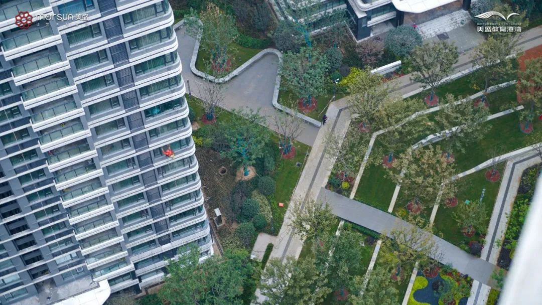 漫步于美盛教育港灣一期,雖已是深秋,但仍可見一步一景,烏桕、紅楓、金桂……多樣的植物、精致的布局,從深秋里的滿目綠意,便能瞥見未來的四季芳華。