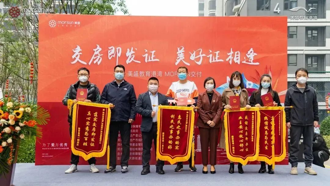當日上午,由鄭州市住房保障和房地產管理局、金水區人民政府、鄭州市不動產登記中心、鄭州市房地產市場和產權交易管理中心、鄭州市維修基金管理中心、鄭州鄭房測繪有限責任公司、金水區住房保障服務中心、金水區豐慶路街道辦事處主辦,鄭州美盛置業有限公司協辦的“交房即發證 美好證相逢”美盛教育港灣交房即發證儀式,在美盛教育港灣一期隆重舉行。在相關部門和數十家省市媒體的見證下,十余位業主代表上臺領取新房鑰匙和不動產權證書,感受收房和領證零時差“無縫銜接”的雙重驚喜。