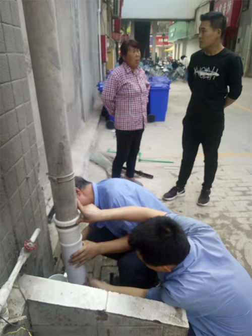 6 22 美盛大廈樓下水管道突然發生堵塞突發情況給二層三層商戶造成很大影響美盛物業客服人員得知情況后第一時間安排了工程人員張永華對下水管道及化糞池進行清理和疏通