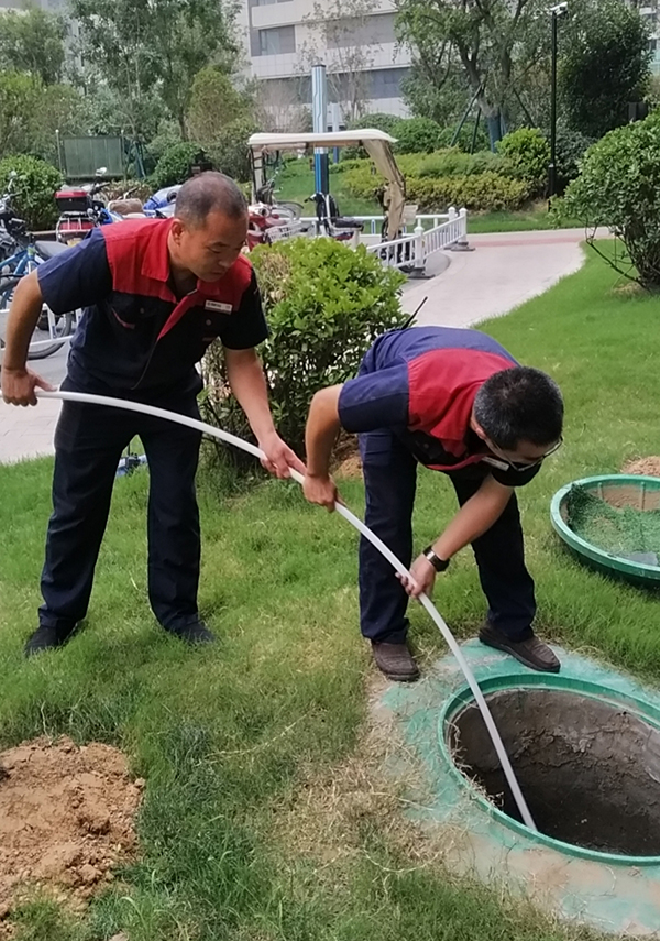 對照室外管網圖和實際情況,對所有污水井、集水坑、化糞池、雨水井及其附屬管線進行檢查,并檢查排水管線與周邊市政排水管網的接口,發現井蓋和井篦破損、管線堵塞(例如:管線坍塌、有積水、有雜物等),及時維修或清理,并注意做好檢查、清理和維修的工作記錄。