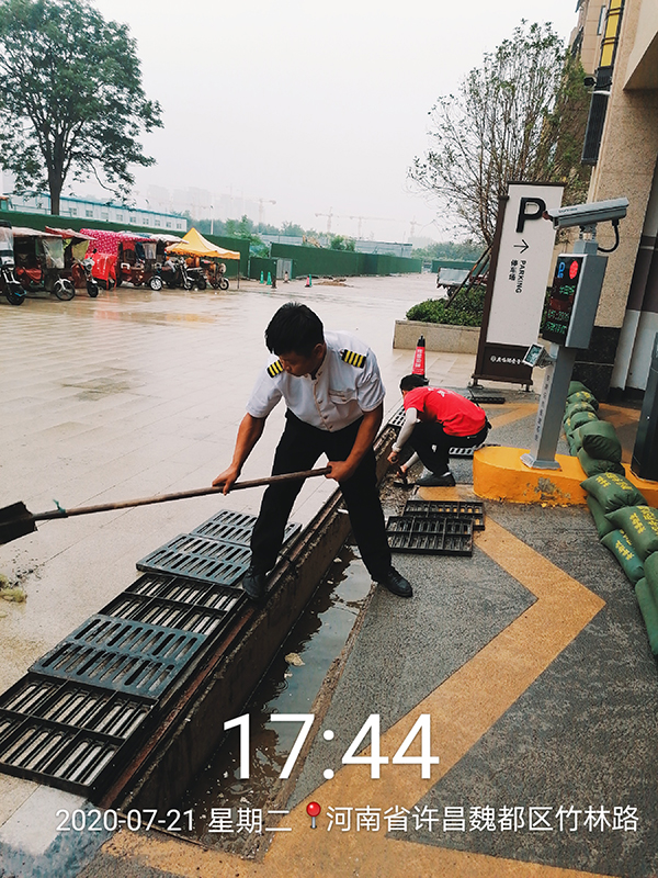 2020年7月21日11時,收到氣象臺發布省內大部分城市迎來暴雨的預警,美盛物業汛期前成立的防汛領導小組,迅速集結完畢,切實采取各種有效措施,真切關注各項目安危,維護廣大業主正常工作、生活環境,保持良好的衛生環境及秩序,立足于做好防汛、防災準備工作,迅速啟動防汛應急預案。