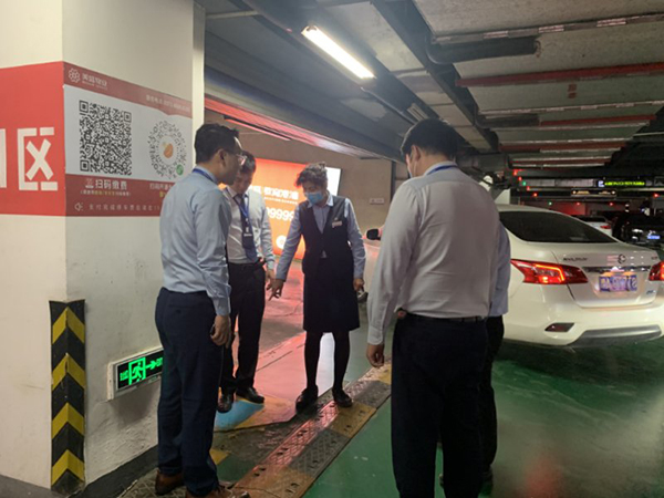 美盛中心寫字樓項目暴雨前,項目負責人帶動各部門進行巡視排查
