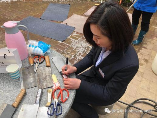 3月5日學習雷鋒日,尚郡小區舉辦學習雷鋒好榜樣的社區文化活動,免費為業戶清洗地墊、磨刀、磨剪子活動,曹亞美提前微信、電話,入戶通知業戶并把業戶需要的剪刀、地墊拿到活動現場讓工作人員處理并把刀具剪刀貼上標簽,以免混淆。