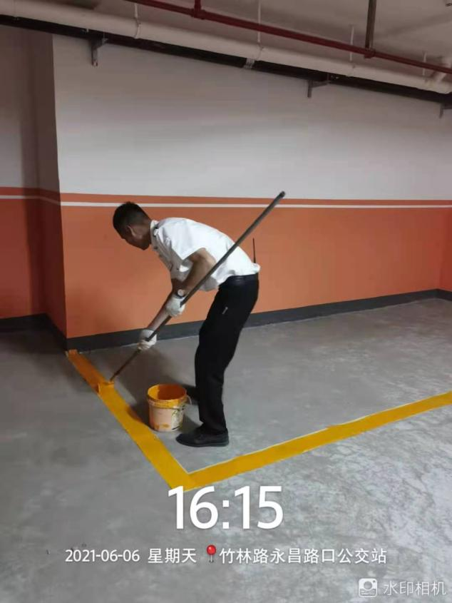 悅府小區高層負一層作為非機動車停放區,地面未設置停車標線,在項目確定要在負一層設置停車標線之后,王志輝主動請纓,承擔起負一層標線的劃設工作,他利用班余時間,對負一層停放區域規劃、地面清理、調漆、劃線等,在他的帶領下,負一層停放區域劃線圓滿完成,并取得良好的效果。