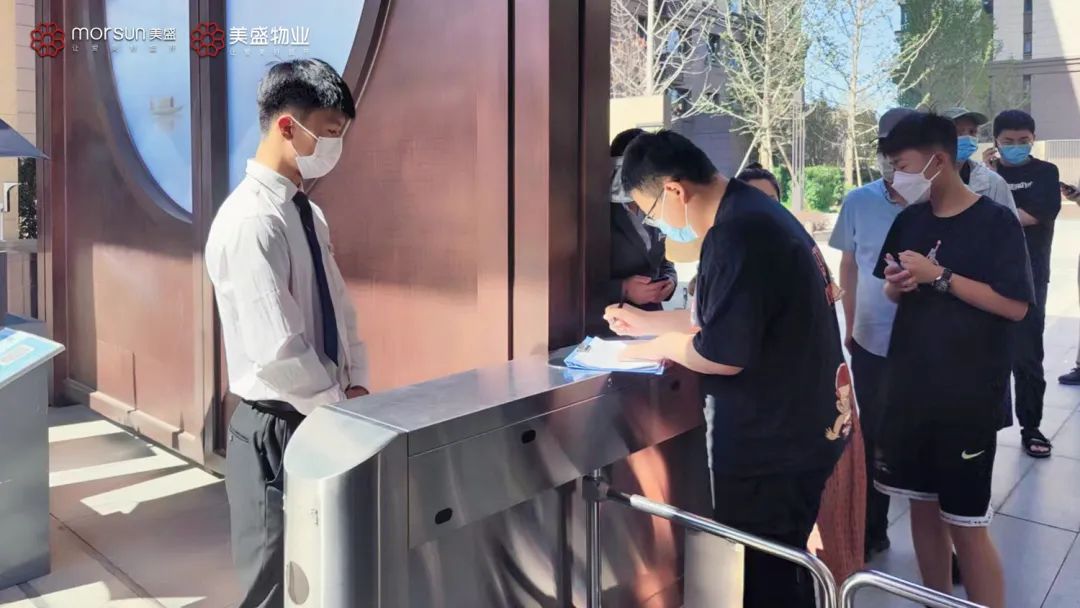 同時(shí),為了保障每一位美盛業(yè)主的安全,美盛集團(tuán)旗下各項(xiàng)目物業(yè)秩序部同事,同樣堅(jiān)守在平凡崗位之上。進(jìn)入小區(qū)所有人員均需佩戴口罩,查看健康碼與行程碼,測(cè)量體溫,確保所有進(jìn)入小區(qū)的人員和車輛都在管控范圍內(nèi),做好門崗陣地第一道防控。