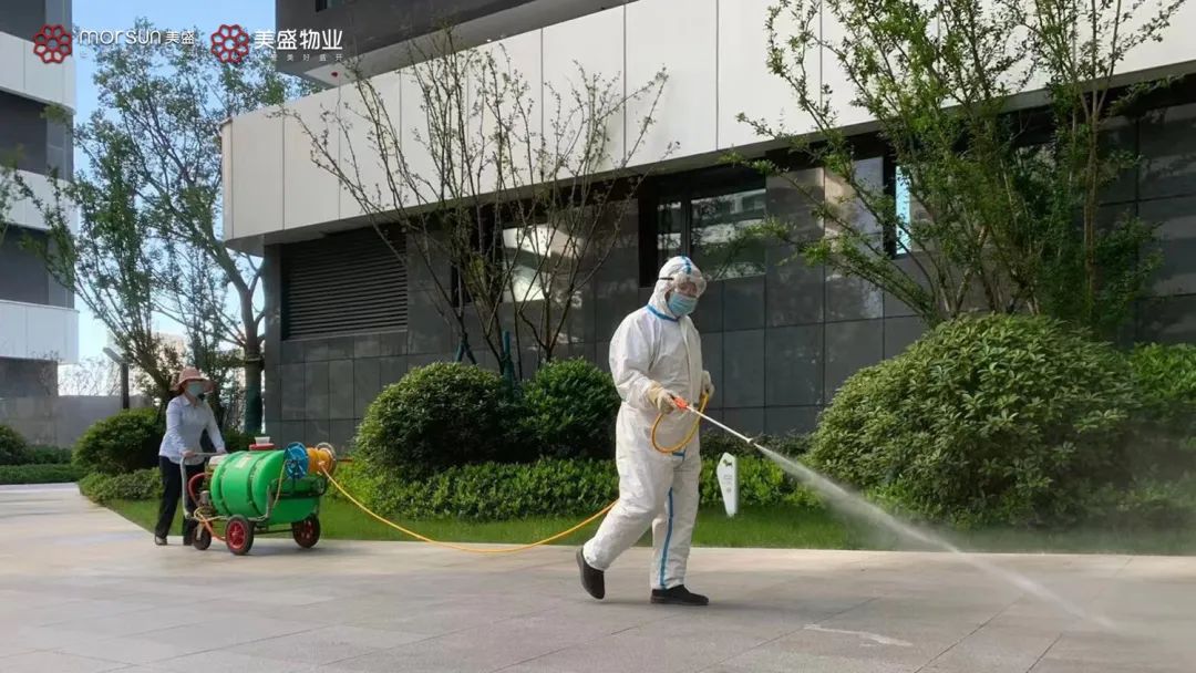 在美盛集團(tuán)的各個(gè)項(xiàng)目里,隨處可見(jiàn)身著防護(hù)服的消殺人員。此次疫情,美盛物業(yè)加強(qiáng)了小區(qū)重點(diǎn)部位的保潔、消殺力度。對(duì)于小區(qū)出入口、樓棟大堂以及核酸檢測(cè)區(qū)域等高頻次的活動(dòng)場(chǎng)所,增加消殺頻次,不遺漏任何死角。