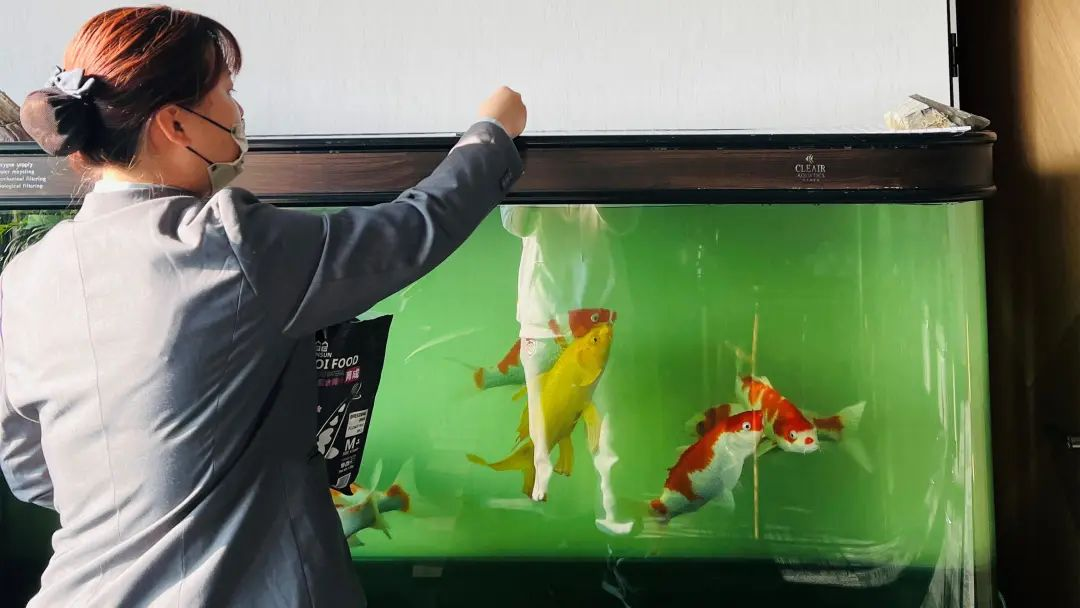 美盛中心物業(yè)人員幫業(yè)戶照顧魚寵